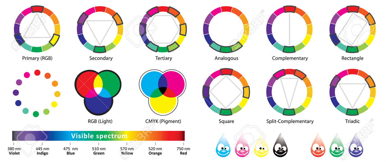 Color Wheel Types Spectrum Schemes Red Green Blue Rgb And Cyan Magenta Yellow Black Cmyk Vector Colors Wheels Sign Samples Circle Gradients Charts Royalty Free Svg Cliparts Vectors And Stock Illustration Image